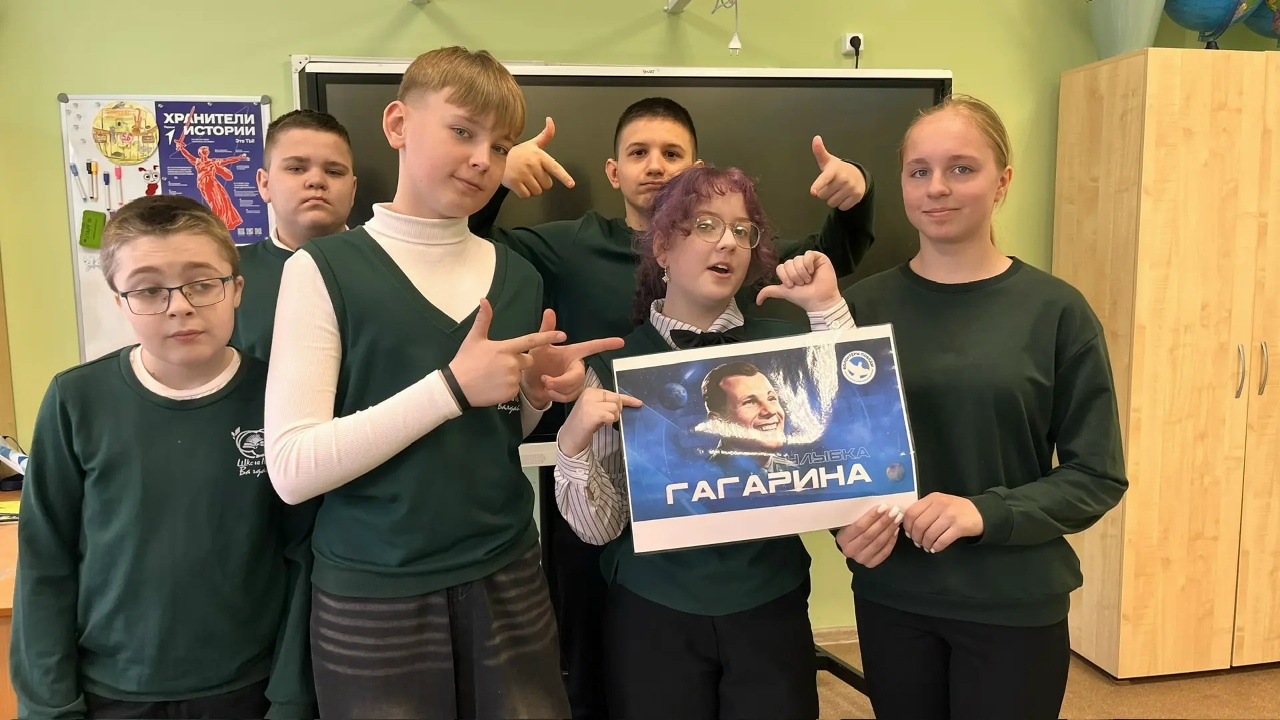 В МАОУ «СШ № 2 г. Валдай» прошла акция — «Улыбка Гагарина». Ребята с удовольствием фотографировались, улыбаясь вместе с портретом первого космонавта планеты.