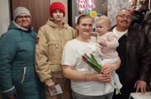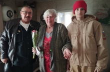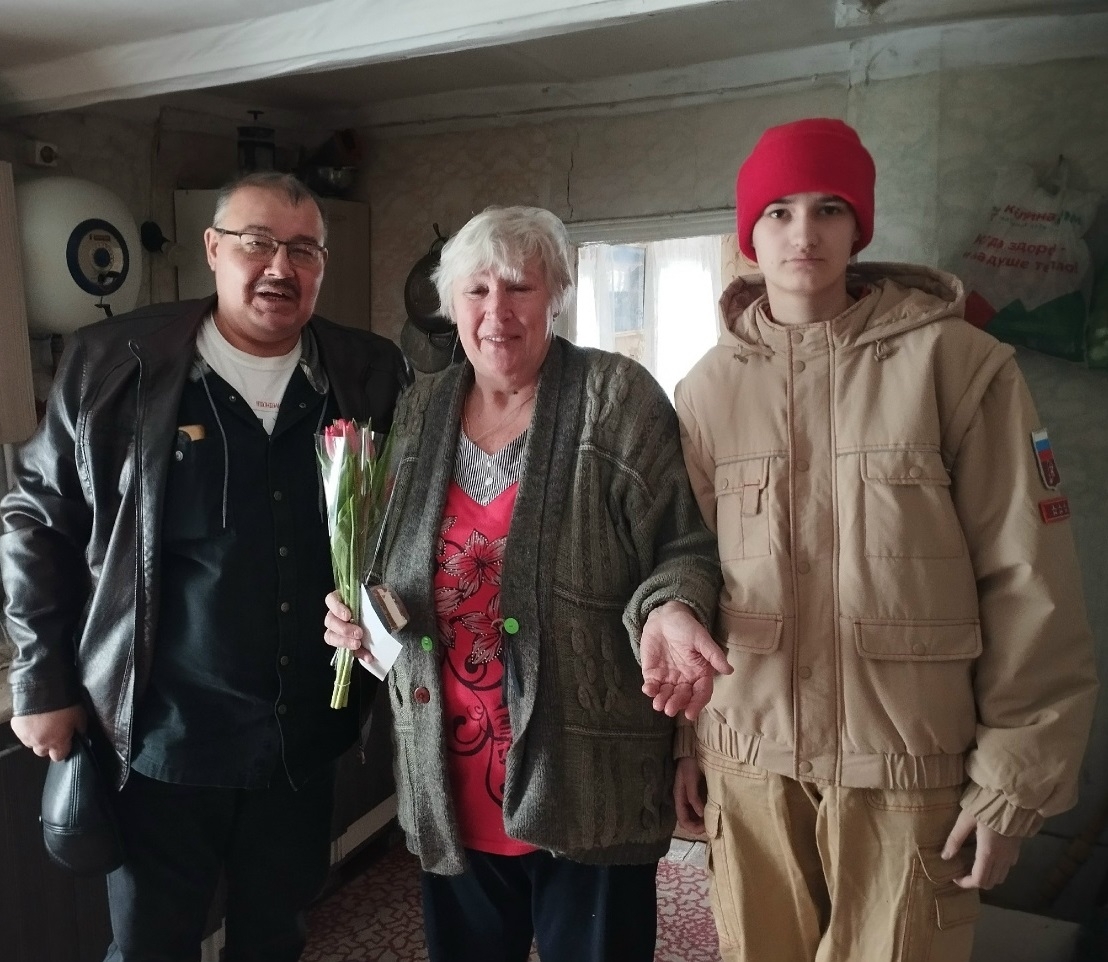 Волонтеры вручили цветы и открытки, пожелав здоровья, успехов и хорошего настроения.